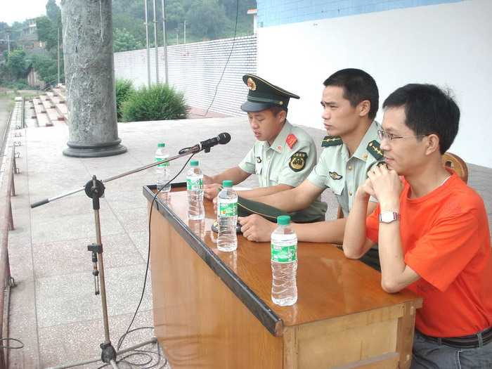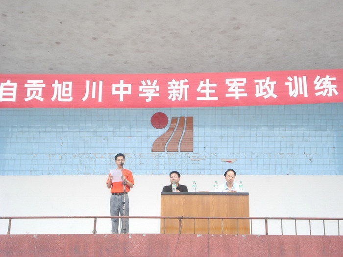 2008年8月26日上午,我校高、初2011级新生军政训练正式开始,工会主席徐健在大会上致辞,武警官兵在大会上做了抗震事迹报告。(党政办)