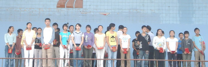 2008年9月1日早上8:00,我校在运动场举行了2008—2009学年度上期开学典礼,总支书记李维庆在典礼上做了讲话,校长李卫东对在高考中获得好成绩的高08级全体教师进行了表扬,上学期获得奖学金的高初中同学也得到了表彰奖励,家长代表、教师代表和学生代表也分别上台做了演讲,最后政教主任张全科宣布了开学典礼结束。(党政办)