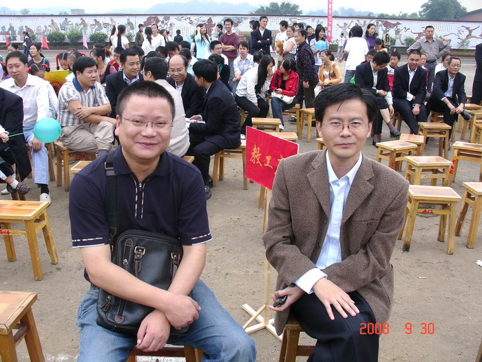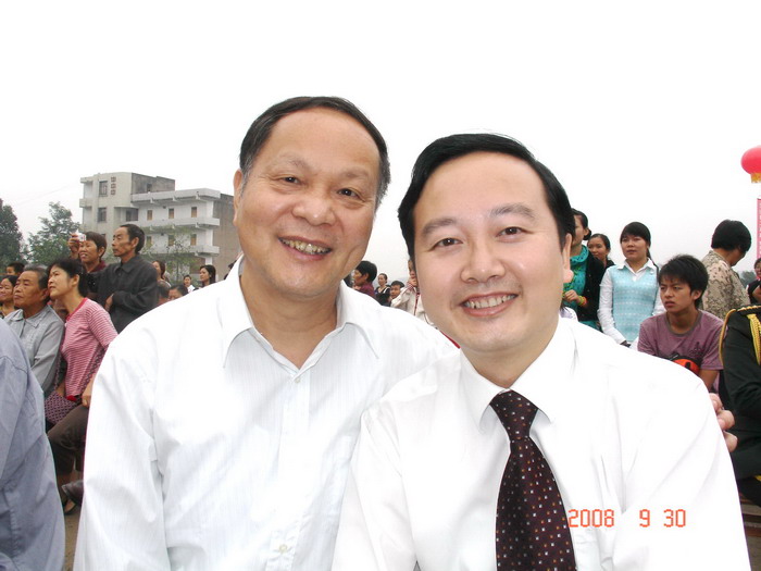 校友杨自力(右)(四川省发改委副主任)与校友宋剑锋(左)(成都市新津县常务副县长)参加校庆活动