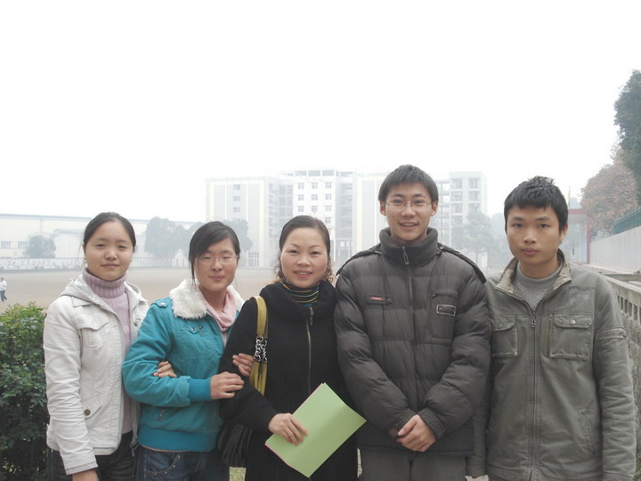 照片从左到右:钟巧文(市二等奖)、陈金凤(国家级二等奖)、李涛(省优秀指导教师)、黄晏曦、罗练(市三等奖)