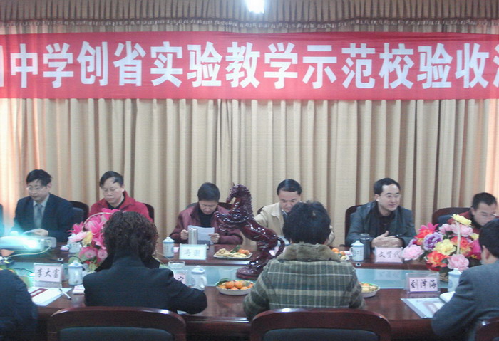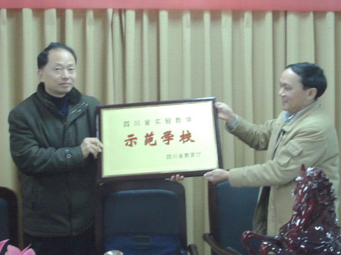 2008年12月15日,四川省教育厅评估专家组技装处石明副处长一行7人,对我校创办四川省实验教学示范学校工作进行了为期一天的评估。专家组通过听、看、查、问、召开座谈会等形式,全面深入地了解了我校的创办情况。专家组组长代表省教厅宣布对旭川中学做为省实验教学示范学校予以确认并授牌。(党政办)