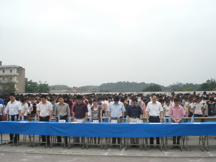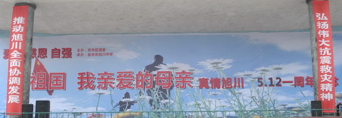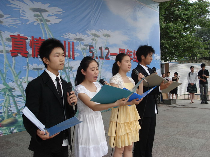 5月12日下午,旭川中学在校内运动场举行了“珍爱生命 自强不息 ——纪念‘5·12’汶川地震一周年诗歌朗诵会”,区委常委、宣传部部长李林、团市委经济部副部长倪虹、区教育局副局长刘泽海等领导及全校师生员工到场参加了纪念活动。