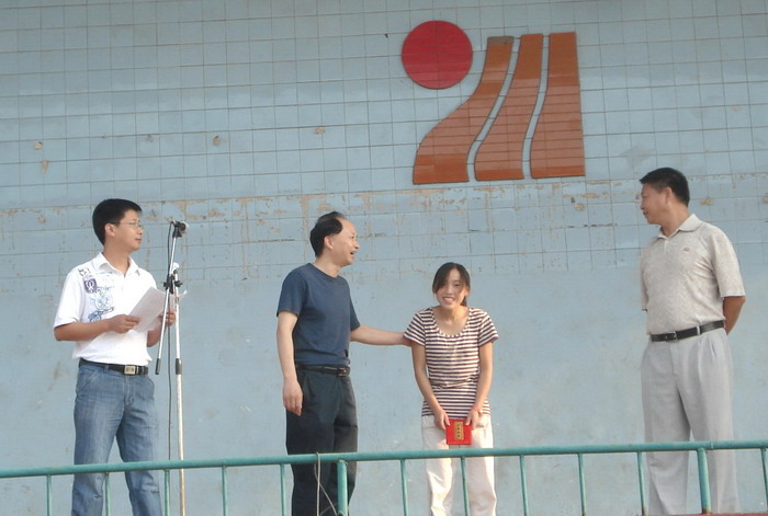 在2009年四川省青少年足球锦标赛男子乙组比赛中,我校初中男子足球队勇夺冠军,工会主席徐健在典礼上宣读了对初中男子足球队全体队员、教练李晓飞、胡宇和工作人员王远、杨淅沐的嘉奖令,倡导全校师生员工学习他们奋力拼搏、敢于争先的精神,为学校的教育教学工作全面提高作出积极贡献。