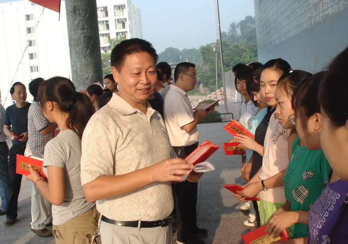 在典礼上,由教务处副主任罗俊伟宣读了表彰上学期优秀学生的决定,对高2012级入学优生钟光夏同学给予了500元人民币的入学嘉奖,对上学期获得奖学金的高初中同学进行了表彰奖励。