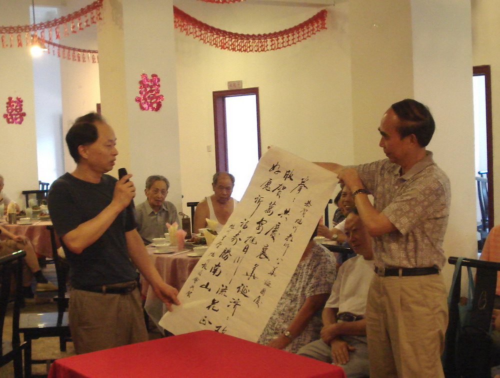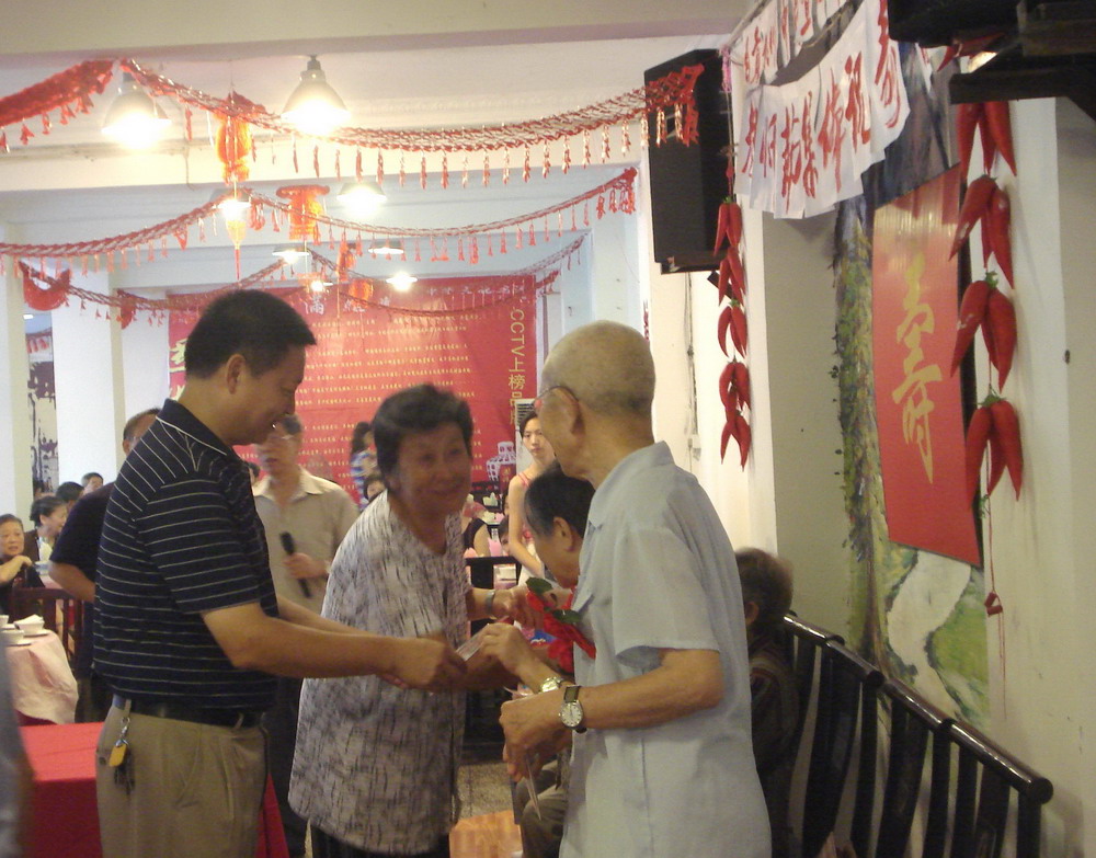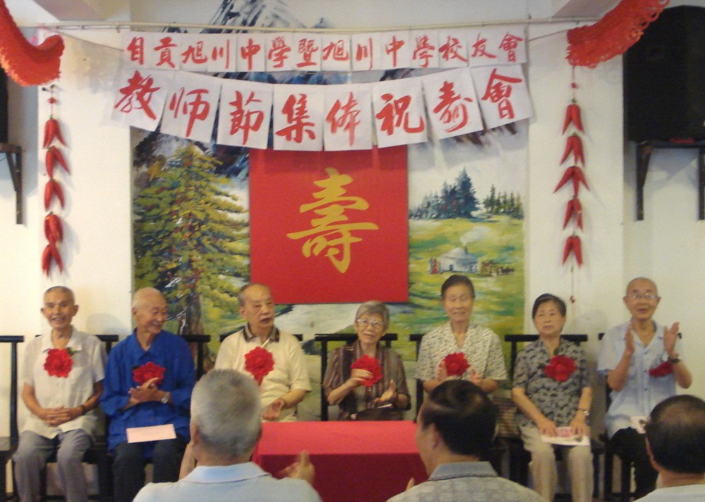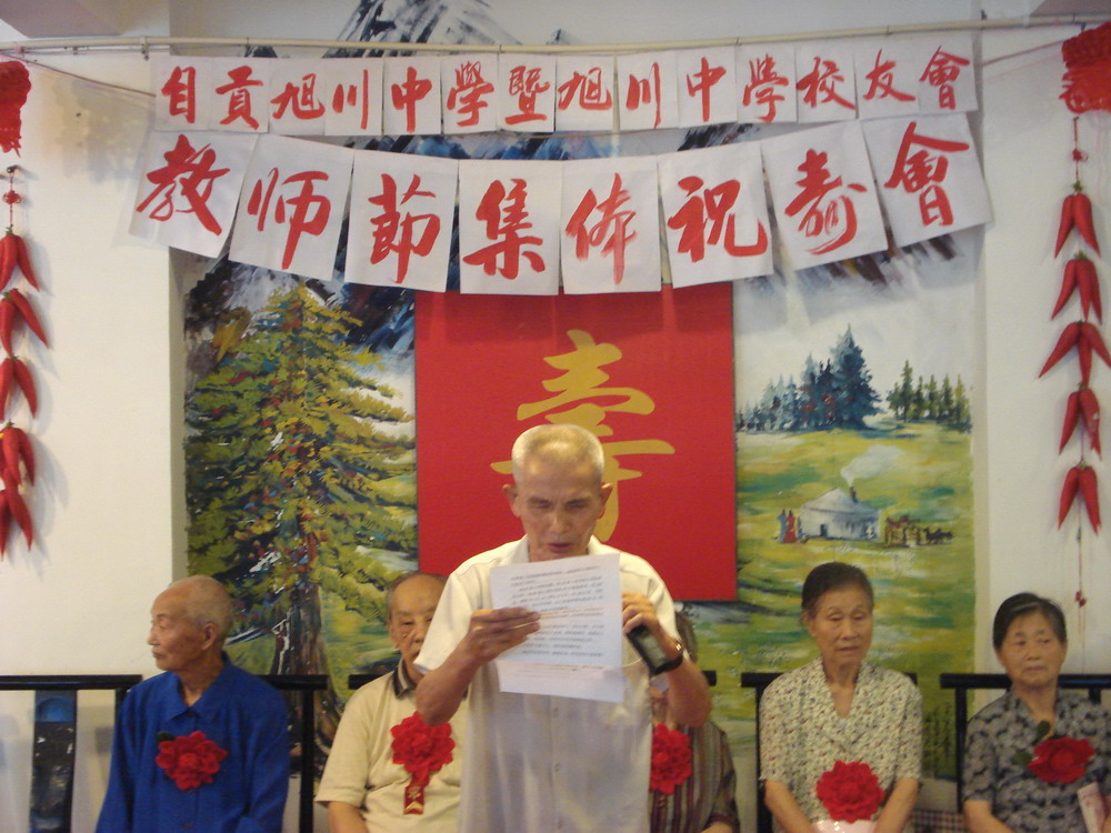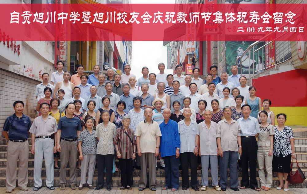 09年9月4日上午,旭川中学暨旭川校友会在贡井香满庭酒楼联合举办了教师节集体祝寿活动,各地校友和退休教师齐聚一堂,向旭川中学80周岁以上老教师祝寿。