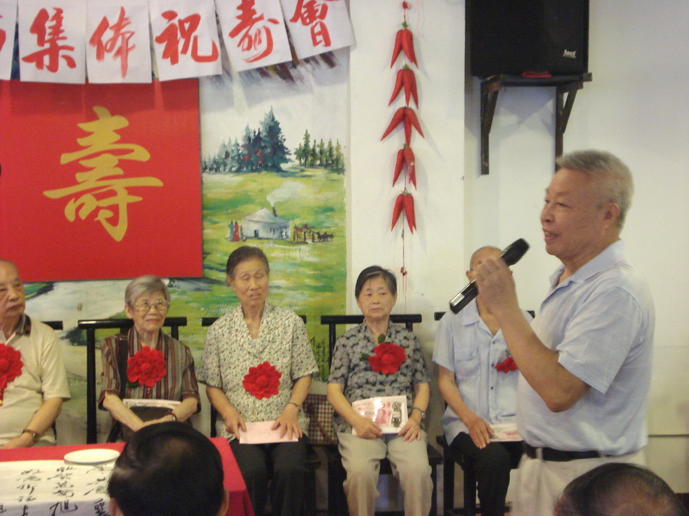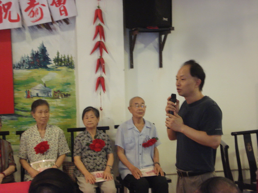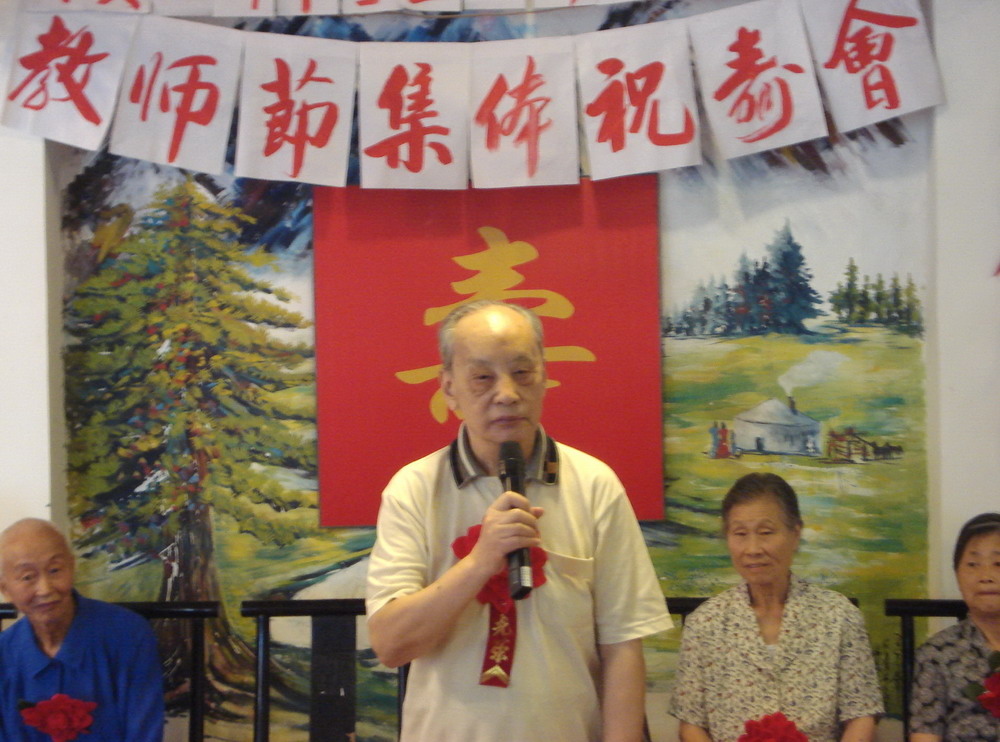 林纲树老师代表老寿星们作了讲话,回顾了以前的教学生涯,并对校友们的情谊表示了感谢。老校长刘极常非常激动,对校友们在多年后还不忘授业恩师感到很欣慰。