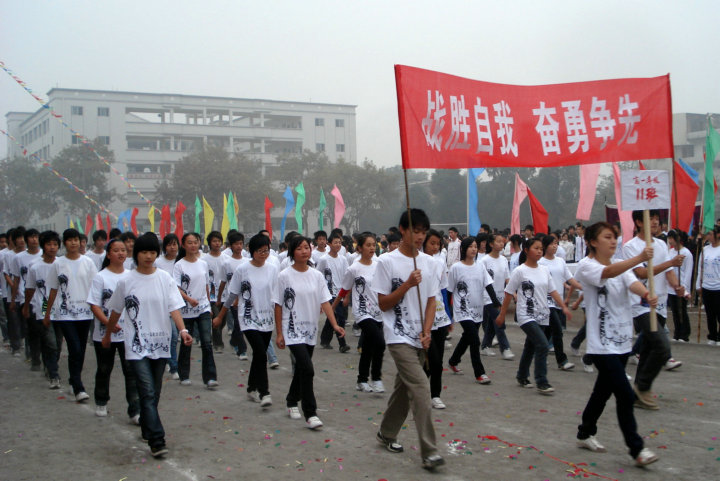 上午8:00,在激扬的进行曲中,各班同学迈着矫健的步伐,高呼着瞭亮的口号,意气风发地经过主席台,他们展示出了顽强的斗志和永不言败的精神。