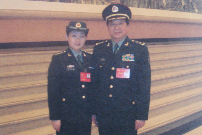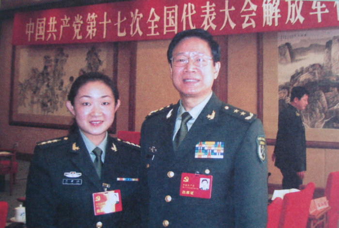 2007年10月,出席党的十七大会议期间,军区政治委员张海阳中将与朱毓姝同志合影留念。
