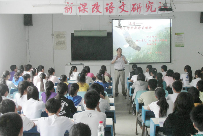9月1日下午2:30,李卫东校长在多媒体教室为新高一的学生上了一堂生动的语文研究课。他为学生描述了自己在清华大学培训的亲身经历,引导学生们建立远大的目标,努力学习,实现梦想,回报父母对自己的期望。
