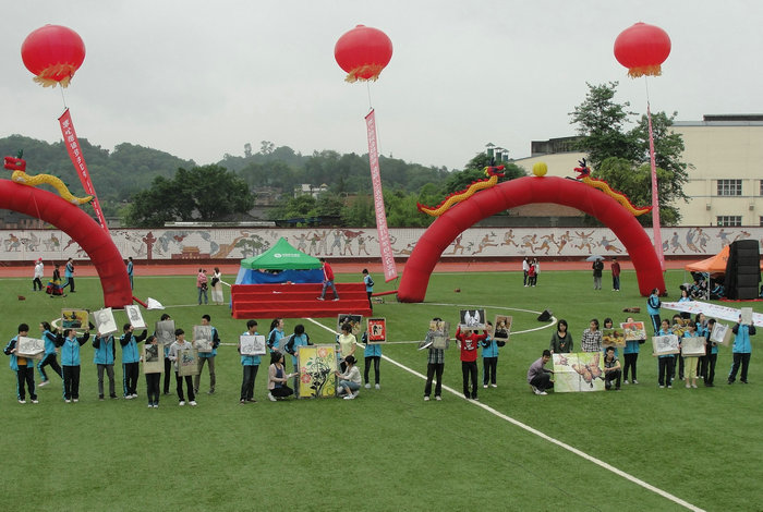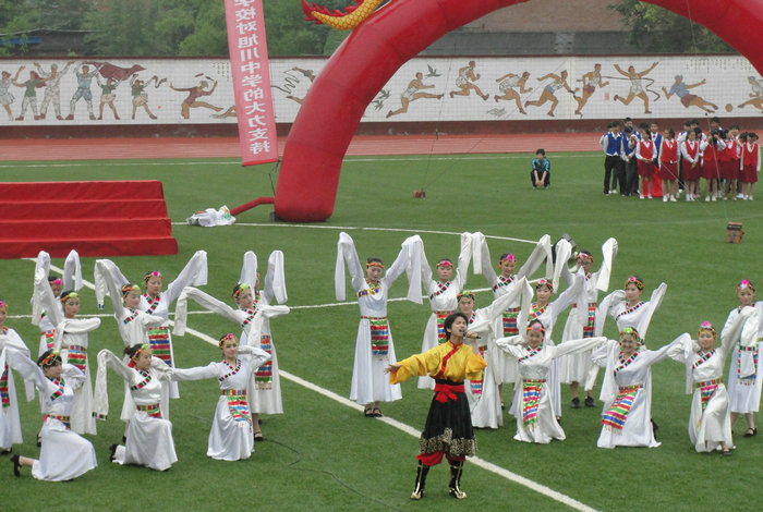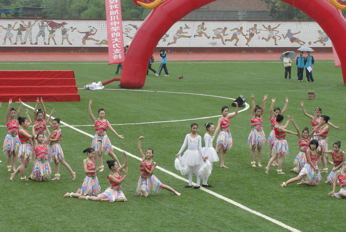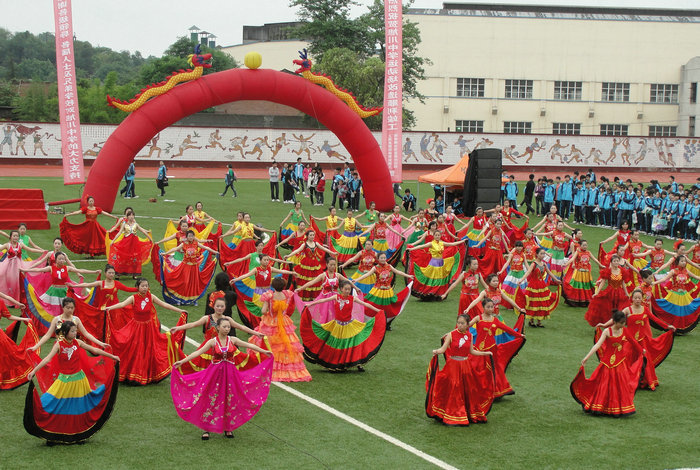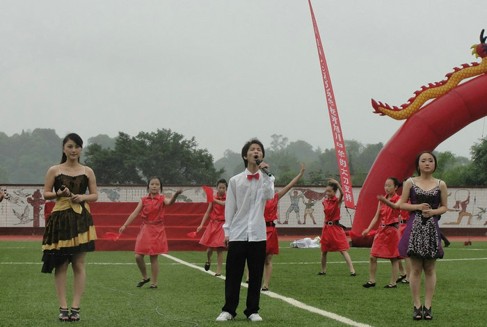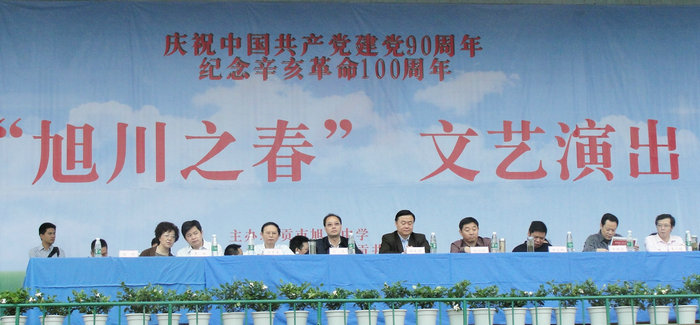 5月21日上午,我校庆祝中国共产党建党90周年、纪念辛亥革命100周年“旭川之春”文艺演出活动在学校新建成的塑胶运动场盛大举行。自贡市人大副主任杨大忠、市教育局局长赵兴明等市区领导及部分兄弟学校领导、老师、家长、同学莅临我校观看了演出。