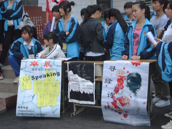 昨天下午4:00,校团委在述怀楼前举行了寻绿诗社、捕风捉影摄影社、U英语社、卓晨演讲与口才社的成立仪式。