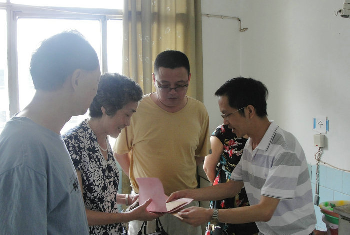 6月29日上午,我校校长李卫东和旭川总支副书记兼工会主席徐健、副校长冯丹东一起到自贡市三医院看望并慰问了老党员、离休干部胡翼飞。李校长代表学校党政工将组织部门下发的生活补贴费和学校的慰问金交到了老党员胡翼飞家属手中。