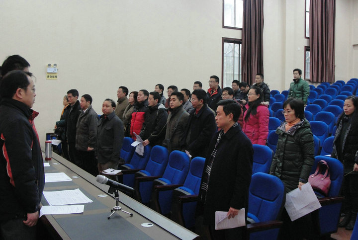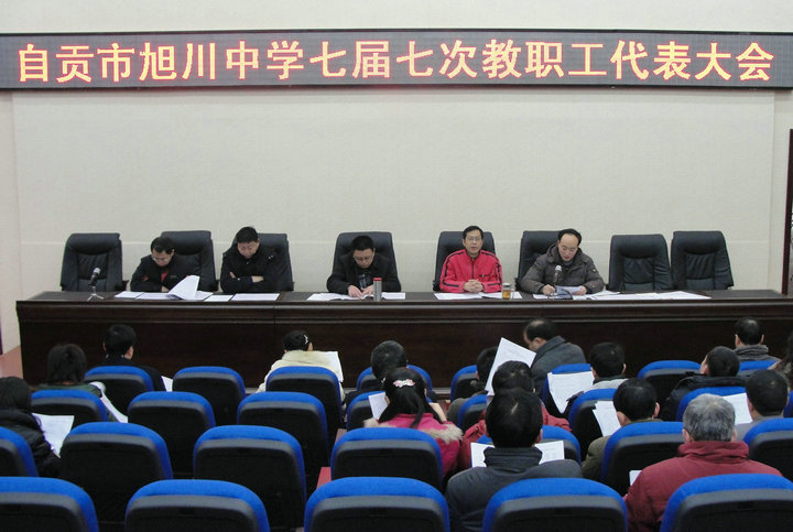 余根权主任代表学校作的《自贡市旭川中学奖励性绩效工资分配方案(讨论稿)》和《高、中级教师职称聘任、晋级评分实施方案》的报告