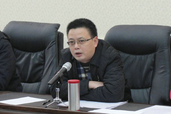 冯丹东副校长代表学校作的《自贡市旭川中学初中教育教学成果奖奖励办法(讨论稿)》的报告