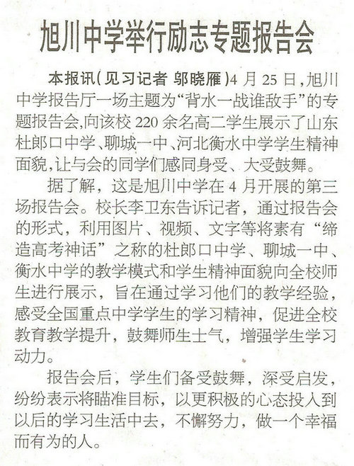 旭川中学举行励志专题报告会