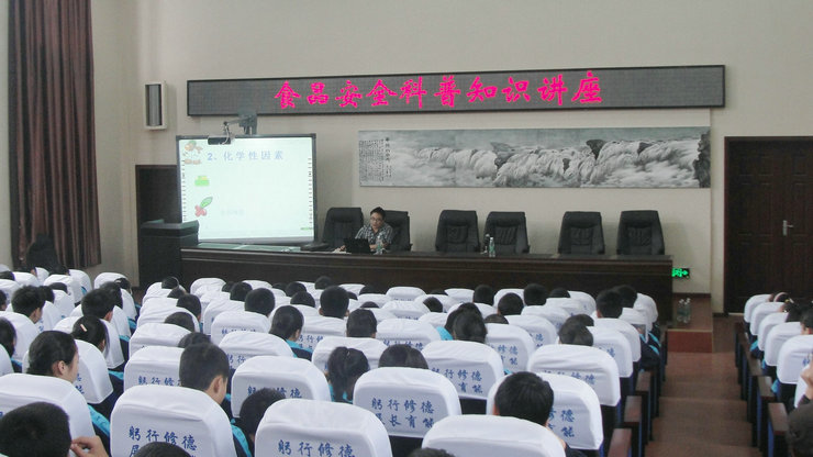 此次会议主要议程有:李卫东校长代表学校致辞,科协党组书记罗庆全通报2012年科普工作情况,市教育局基教科副科长刘克寒宣读了“中国数字科技馆观测点”优秀示范学校命名文件,市委宣传部调研员傅仕彬宣读优秀科普示范社区命名文件,市领导为获奖单位颁奖等。会后在学术报告厅进行食品安全知识讲座,我校初二学生认真听取了讲座。