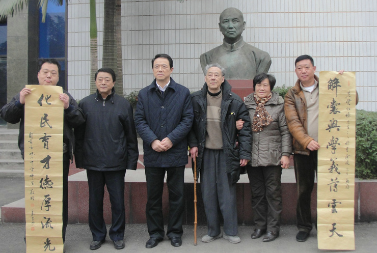 我校捐资创办者之一余述怀的孙子重庆高院常务副院长余捷偕其父亲余鼎钦等家人于1月18日回自贡,来到了由余述怀首倡创办起来的自贡旭川中学。受到了我校全体师生的热烈欢迎,李卫东校长等陪同参观了我校校园和校史陈列馆,详细介绍了学校近年来的新变化,新发展。并代表学校向余述怀家人赠送了“解囊兴学义薄云天”“化民育才德厚流光”的纪念条幅。