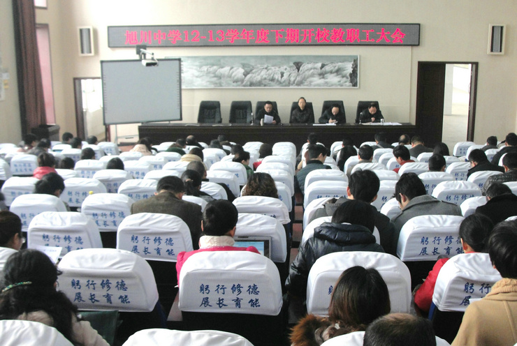 在会上,冯丹东副校长代表学校对2012年的学校工作做了全面而客观的总结,2013年学校的工作思路、目标和措施做了详细而全面的阐释;刘洪副校长对分管的后勤和安全工作做了强调和布置;办公室李林主任和教务处罗俊伟主任分别对开校工作和教学工作做了具体布置和要求;最后,学校李卫东校长对全体教职工提出了明确要求和期望,号召全体教职员工统一思想,紧密团结,锐意进取,为全面完成2013年学校各项目标而奋斗,再创旭川中学新的辉煌。