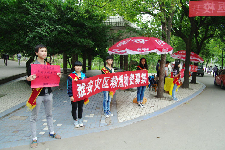 从23日起我校募捐委员会便在学校设立募捐点宣传募捐活动并接受全校师生的募捐,在第一时间全校各班级纷纷行动,以班级或个人形式把筹集到的物资和善款送到募捐点。24日晚9点我校举行了为雅安祈福活动,参加活动人数达数百人。截止