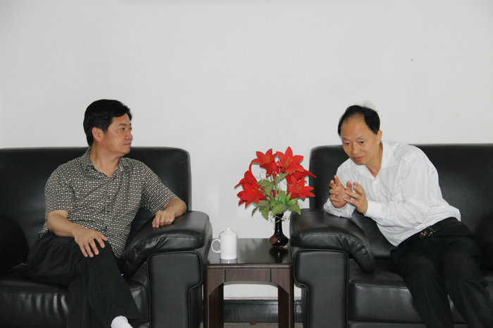 区委常委、区委组织部长黄晓燕(左一)在听取李卫东校长(右一)所作学校工作汇报