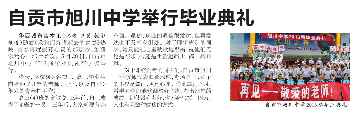 转载自2013年6月5日《华西城市读本》15版——旭川中学举行毕业典礼。