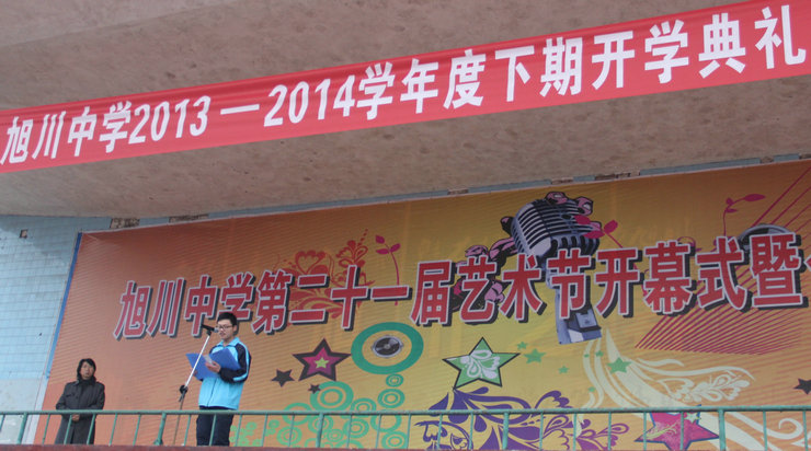 开学典礼在庄严的升旗仪式中开幕,学校党总支书记、校长冯丹东发表了热情洋溢的致辞并宣布新学期正式开学,冯校长首先代表学校党政工向平安返校的全校师生表示热烈的欢迎;同时指出,过去学校十多年的发展历程,以李卫东校长为首的校级班子,紧紧依靠全体教职工,用心谋事,用心做事,励精图治,实现了学校高中办学规模的扩大,极大的改善了学校的办学条件,高考本科一次性上线突破200人大关,达到旭川历史的新高,得到了上级主管部门和社会的认可和赞誉,全校师生为之自豪和骄傲;过去的2013年,我校在2013年度区教育局年终督导评估中获得优秀级学校,高2013级参加高考成绩斐然,高考本科上线230人,重本完成市教育局目标任务率居全市重点中学第三名的佳绩,我校中考稳步提升,各修业年级屡创佳绩,受到各级领导和社会各界的广泛好评;他强调:“学习需要付出努力,需要恒心、毅力和静气,更需要战胜懒散的勇气和意志。在此我希望全校同学们勤奋学习,不断进步,勇往直前,战胜自我,去拥抱成功!”最后,他满怀深情的说:“风劲帆满海天阔,励志图强谱新篇。旭川人必将乘势而为,以高昂的斗志,意气风发去迎接明天的挑战,以不断进取的姿态去创造更加辉煌的业绩,我们坚信在全校师生的共同努力下,旭川的未来会更美好!”