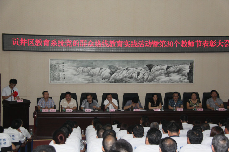 9月10日上午,贡井区教育系统群众路线教育实践活动暨第三十个教师节表彰大会在旭川中学阶梯教室隆重举行,区委四大班子分管联系教育领导及人大、政协教科文卫主任、区教育局领导班子出席会议,全区各中小学、幼儿园及直属事业单位党政负责人和所有受表彰人员计200余人参加会议。区教育局副局长杨成伟主持会议。