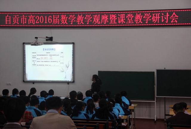 10月23日,自贡市高2016届数学教学观摩暨课堂教学研讨会在我校举行。根据教科所安排,本次观摩课由获得自贡市首届“聚焦课堂、有效教学”网络晒课活动一等奖的我校高二数学备课组廖晓英、倪铮两位老师承担。两位老师和同学共同为近百位老师呈现的课堂和先进的教学手段受到教科所专家和参会老师的一致好评。