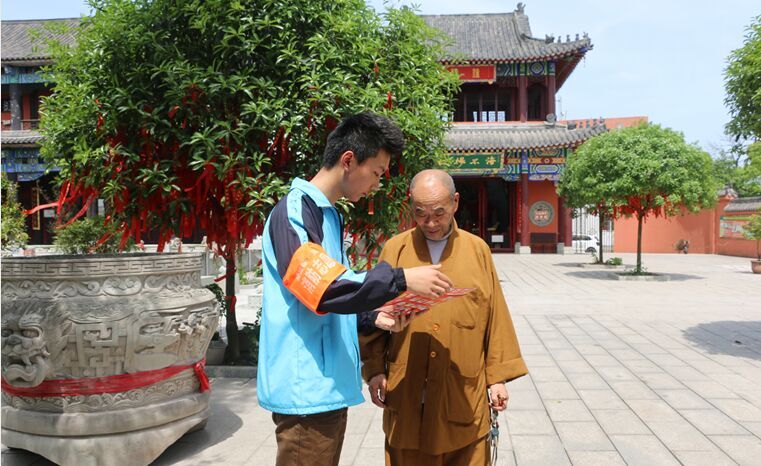 4月2日下午,旭川中学国旗班部分队员以消防志愿者的身份参加了贡井区公安消防大队举行的防火安全宣传活动。队员们克服了天气炎热的困难,走进天池禅寺为广大僧侣及香客带去了消防防火安全知识。