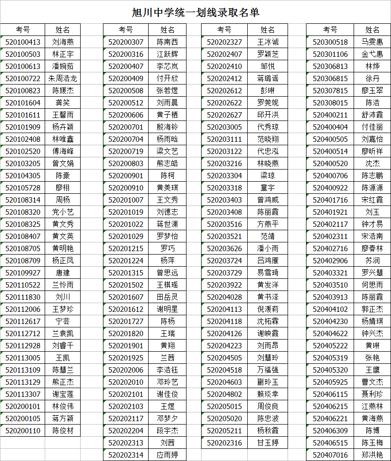 热烈祝贺以下同学在指令性计划中被我校录取为高2018届新生