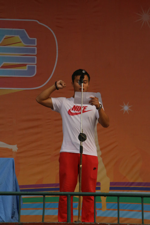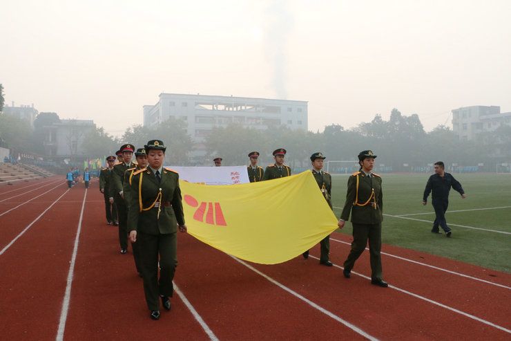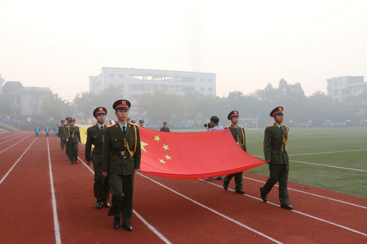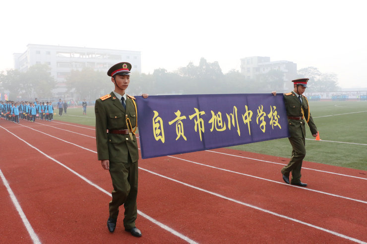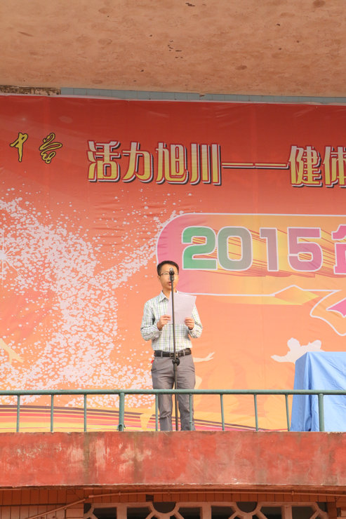 旭川中学校长、大会组织委员会主任冯丹东宣布:“自贡市旭川中学举行2015年秋季运动会开幕!”