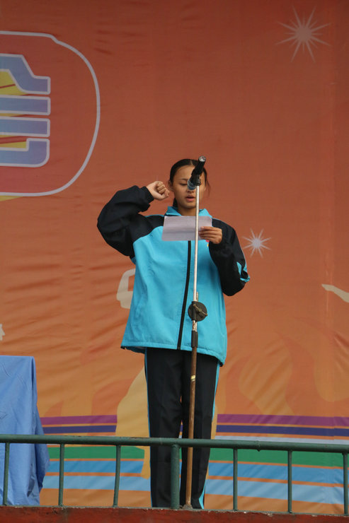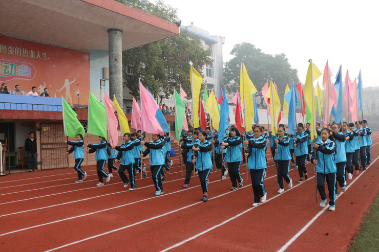 在国旗、校旗、会旗、校牌的引领下,鲜花队和彩旗队的领头,全校高初中年级各班迈着矫健而又整齐的步伐依次跑步入场。团委罗敏书记主持开幕式,党总支副书记、工会主席徐建书记致开幕词,运动员代表,裁判员代表分别宣誓,最后学校党总支书记、校长冯丹东宣布运动会开幕。
