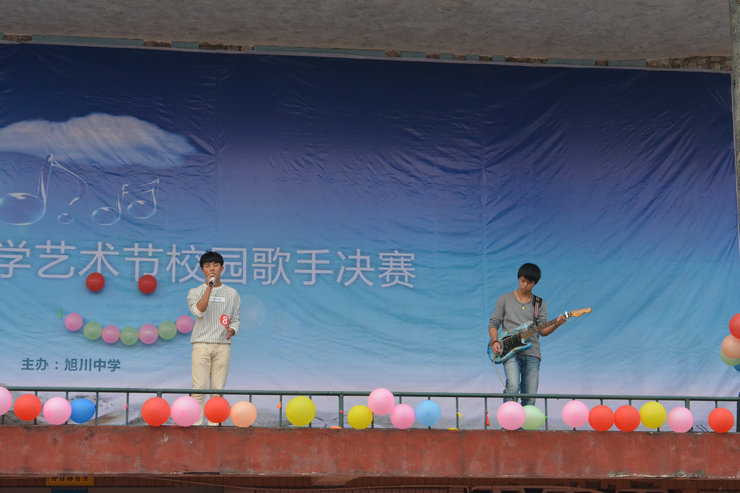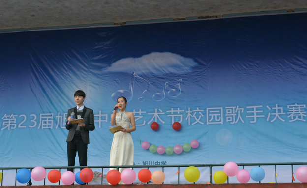 2015年11月10日下午三时许,歌声从旭川中学运动场内传出,期待已久的第二十三届校园艺术节--校园十大歌手大赛决赛在这里隆重举行。全校高初中年级学生参加观看了此次比赛。本次大赛的评委团由罗勇、魏秀英、罗敏、李鲲、钟敏老师组成,张浩、曾月担任本次主持。