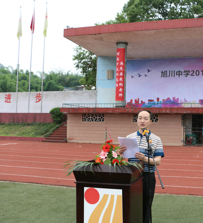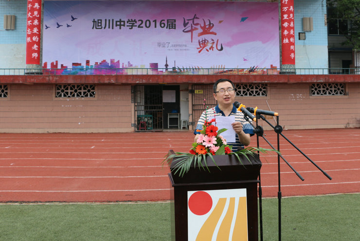 2016年5月31日清晨,自贡市旭川中学运动场上,在庄严的国歌声中五星红旗冉冉升起,2016届毕业典礼在此隆重举行,高三、初三全体师生参加,学校党总支书记、校长冯丹东及有关领导莅临典礼并讲话。