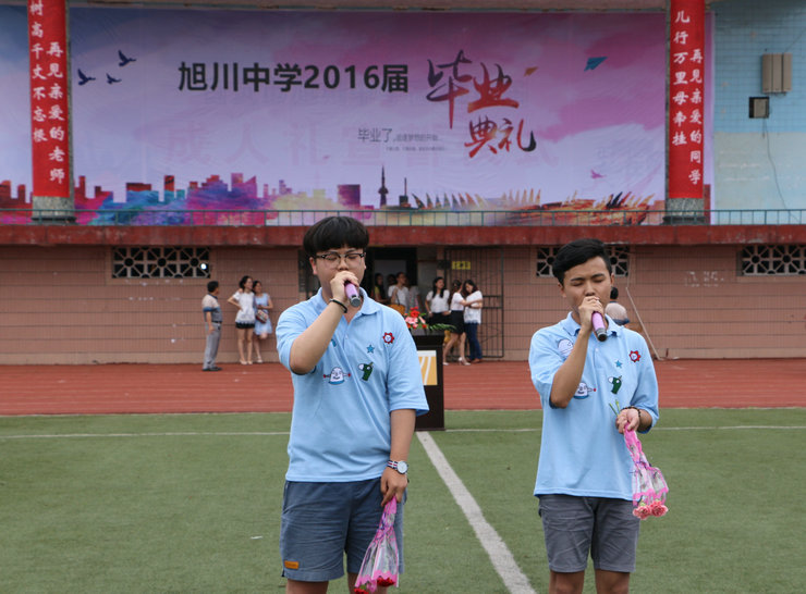 刘洪副校长的讲话充满激情,他希望同学们牢记自己的理想,不忘初心;热爱学习,坚持真理;珍惜现在,珍重未来。徐强老师赞赏在座的同学是他带过的最棒的学生,他对自己的学生说:“这三年能陪伴你们,是我最幸福的事。仿佛这三年的记忆就像昨天一样。“高中毕业”概括了你们12年追求知识的风雨历程,也代表着你们的成长。”学生代表张洪铭说,“逝者如斯夫,勿忘师恩”三年转瞬即逝,不知不觉中便已到离别,心中是一万分的不舍,不舍老师,不舍同学,不舍旭川。句句脏腑之言,道出了师生深深的情谊,不舍的依恋和牵挂。
