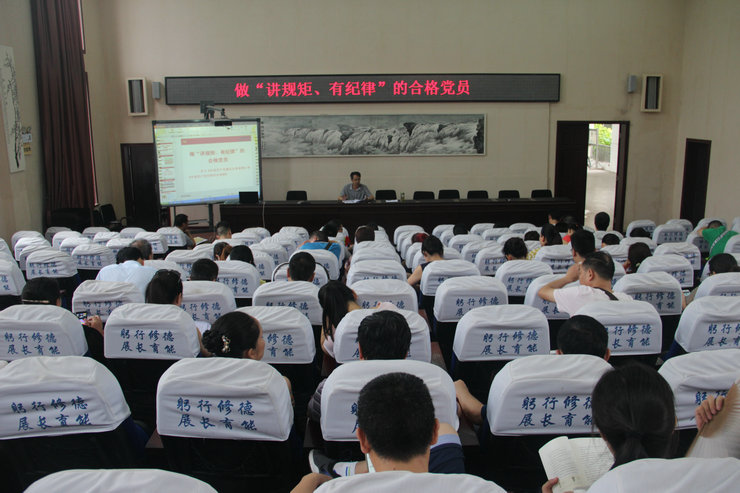 大会第二阶段,徐健书记做了“讲规矩、有纪律”的合格党员讲座,用三十七页课件向学校全体党员展示了《中国共产党廉洁自律准则》和《中国共产党纪律处分条例》的相关内容,讲解准则和条例的具体含义,并指出两大党规充分体现了党中央全面从严治党的坚强决心。两大党规一方面通过廉洁自律准则确立高标准,一方面通过党纪处分条例守住最底线,从而在全党树立起党规党纪的权威性和严肃性。两大党规的颁布,是党的建设的一件大事,党员干部必须认真学习,坚决贯彻。