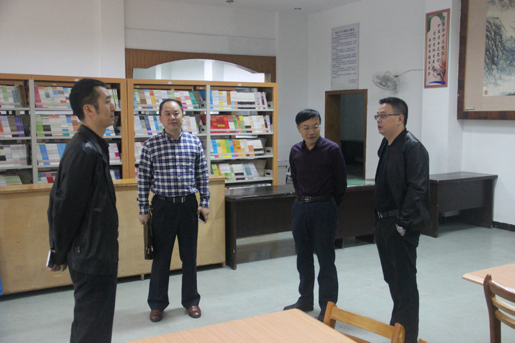 冯丹东校长陪同徐晓春、张长明、杨成伟几位领导参观学校图书阅览室