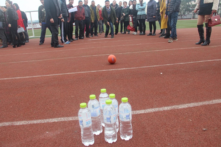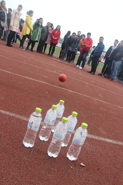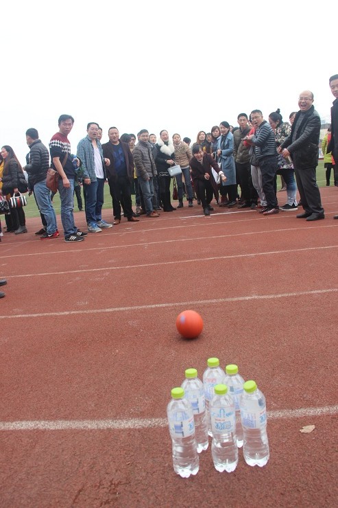 为庆祝“三八”国际妇女节,自贡市旭川中学于2017年3月7日在学校运动场举行了“妇女节趣味运动比赛”,全校教职工均参与了此次活动。活动于下午4点开始,参赛教职工分为高一、高二、高三、初中、后勤共计五个组,一同参加了学校准备的保龄球项目。经过1小时左右的竞技,最终由后勤组获得第一名,高一、高二、高三、初中组则分获第二、三、四、五名。