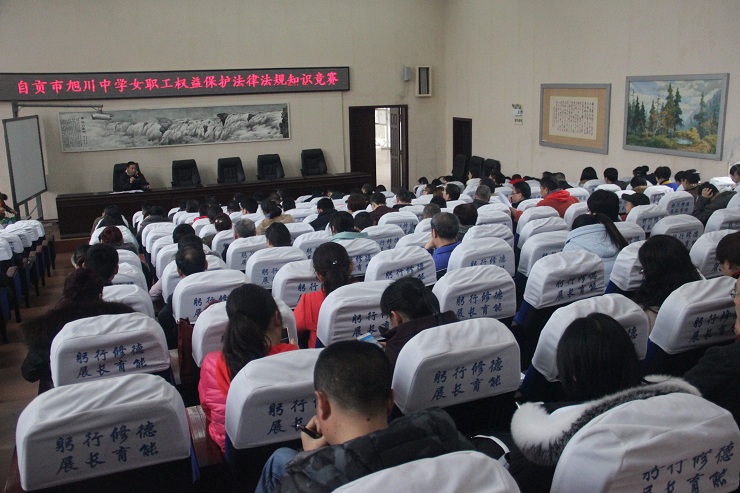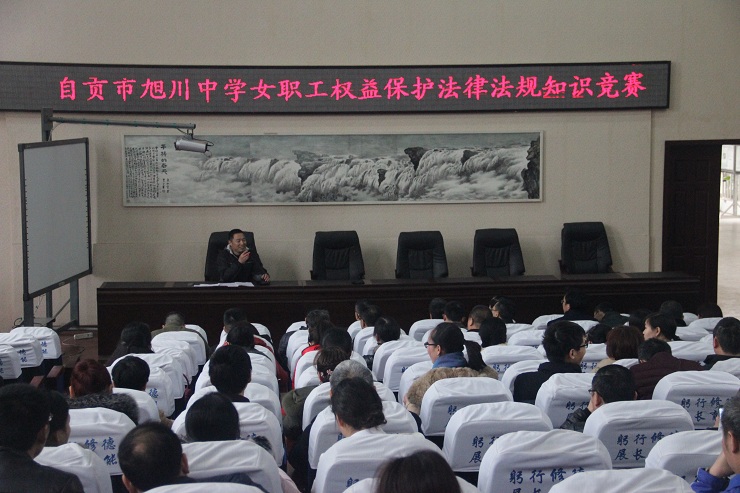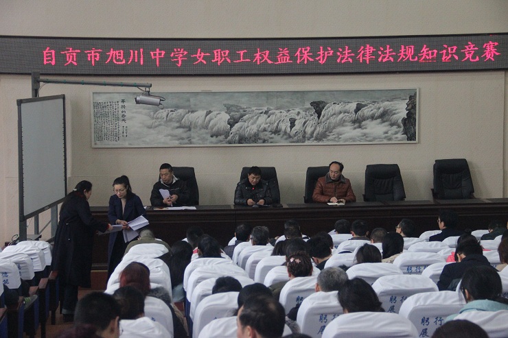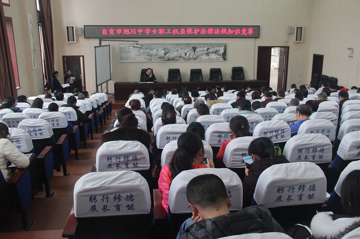 2017年3月14日,自贡市旭川中学举行了以“女职工权益保护法律法规知识学习和竞赛”为主题的教工大会。大会由学校党办主任张全科主持,全校多数教职工到场参与了大会和竞赛。