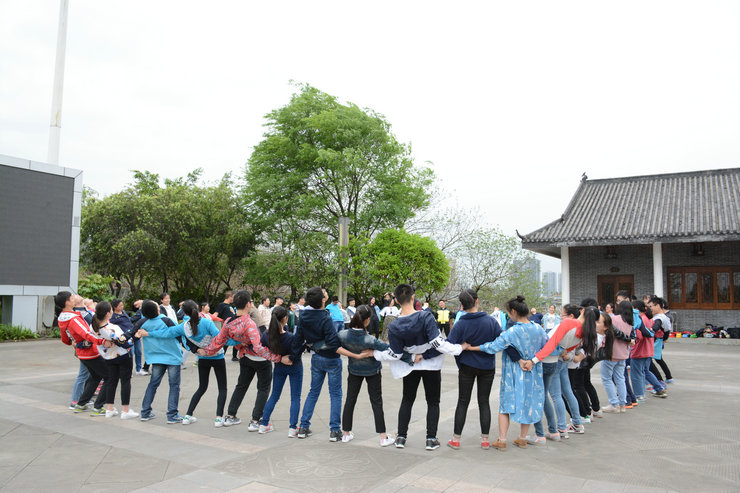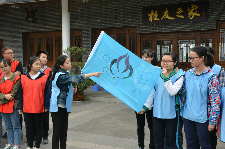拓展活动在四川理工学院校园内举行,历时一天,内容丰富多彩、简单有趣。拓展的学生随机分为4个小队, 各队自行设计小队的队名队歌队旗。
