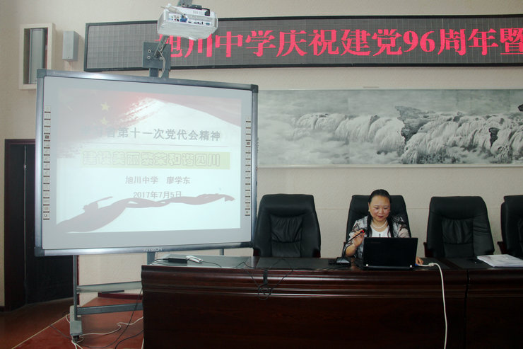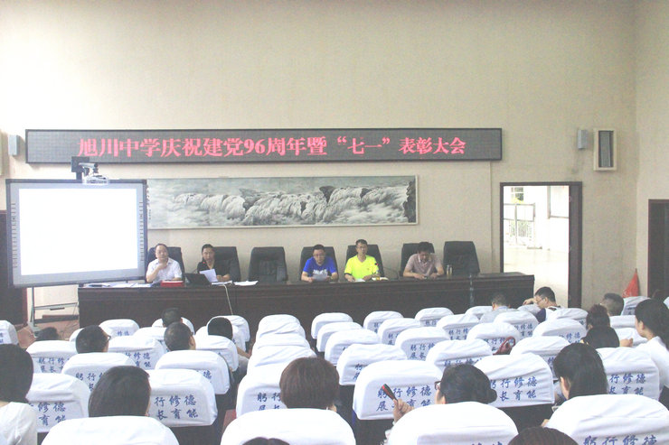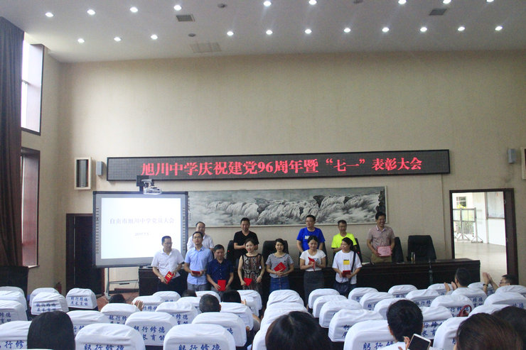 2017年7月6日,虽然大雨滂沱,旭川中学党总支按原计划在学校学术报告厅举行庆祝建党96周年暨“两学一做”专题讲座大会,大会由校党办主任张全科主持,旭川中学全体党员近百人参加会议。