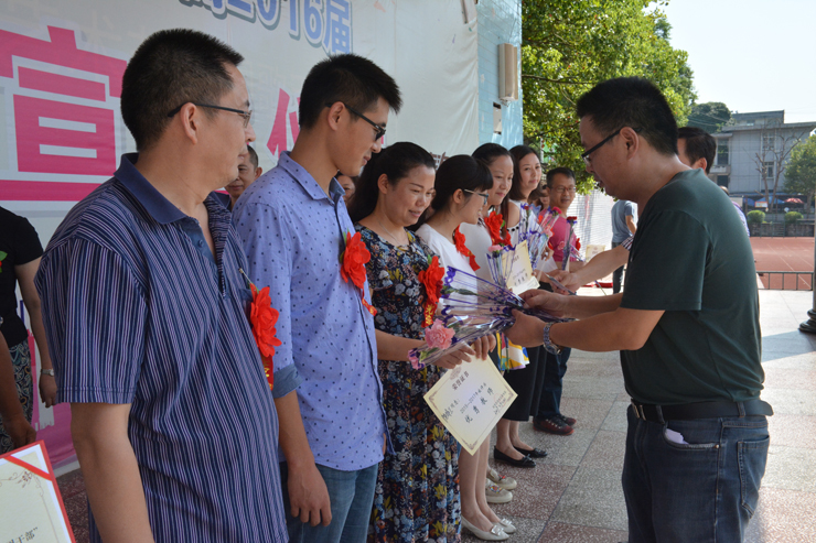 学校领导为受表彰教职工颁发证书