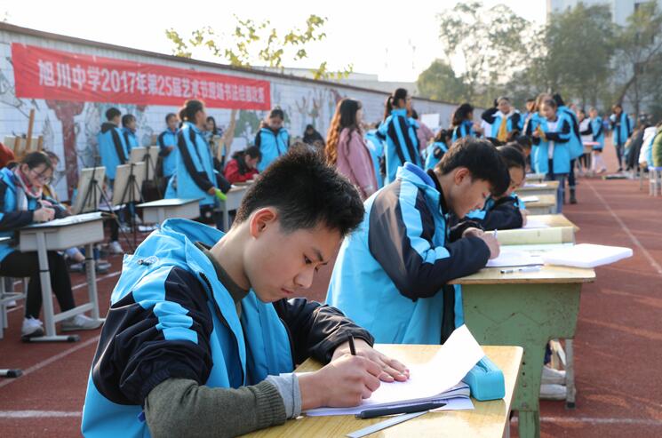 12月19日16时,旭川中学第25届艺术节现场书法绘画比赛在校运动场举行。来自全校各年级的百余名学生参加,学校美术和书法教师担当比赛评委,现场气氛十分热烈。