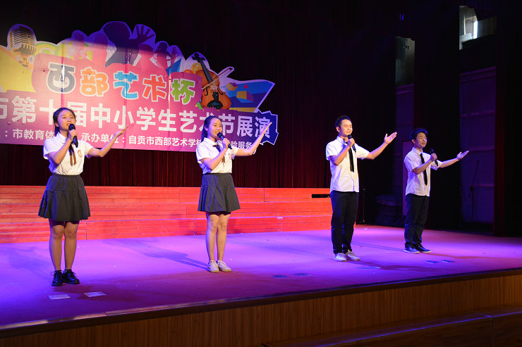 4月26日下午,为期三天的“西部杯”自贡市第十届中小学生艺术节在自贡市教育和体育局继续进行,我校选派的三个节目均获佳绩。在声乐类比赛中我校选送的两个节目《阳光下的我们》和《晚安村庄》分别获得了声乐类一等奖和三等奖。在朗诵类比赛中我校选送的《十八岁的畅想》获得了朗诵类一等奖,并且是全场最高分。
