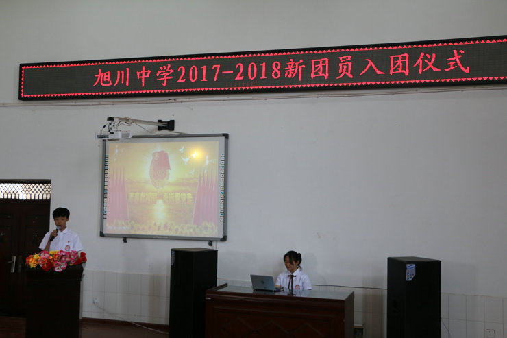 大会在庄严的国歌声中拉开帷幕。新团员入团仪式上,旭川中学领导为新团员亲手佩戴上团徽,入团介绍人代表周红宣读团员的义务和责任,新团员代表罗承耀和老团员姜蕴哲分别作了发言,校团委书记罗敏对新团员表示祝贺并提出了殷切的希望,政教主任王亮宣读了表彰决定。