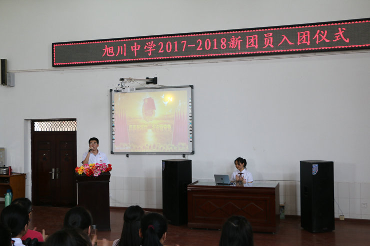 2018年5月15日下午,自贡市旭川中学2018年新团员入团仪式暨共青团工作表彰大会在学生活动厅举行,校党总支副书记、工会主席徐健,政教主任王亮,校团委书记罗敏,100余名新团员和部分受表彰的学生参加了大会。
