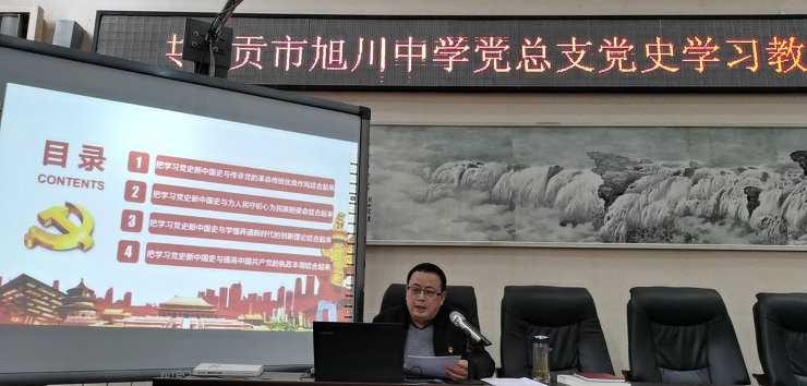 徐健副书记在大会上具体部署《中共自贡市旭川中学总支委员会开展党史学习教育实施方案》,根据上级党委有关安排部署以及《关于在全党开展党史学习教育的通知》要求,决定在全校师生中深入开展党史学习教育,对党史学习教育提出了具体的要求。