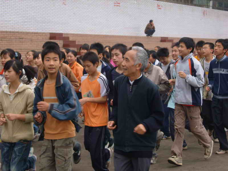 4月29日上午10时,我校2500名师生在学校操场集合完毕,李维庆书记打响发令枪,我校“迎奥运阳光行动”活动正式开始。首先进行的是全校的跑操锻炼,接着是分年级活动:高二拔河比赛,高一接力比赛,初中投篮比赛。全校师生兴致高昂,连年近6旬的周铁汉老师也兴致勃勃地跟着学生队列跑操,整个活动进行了一个小时。《今日晚报》教育版记者伍小平、周红到现场进行了采访报道。