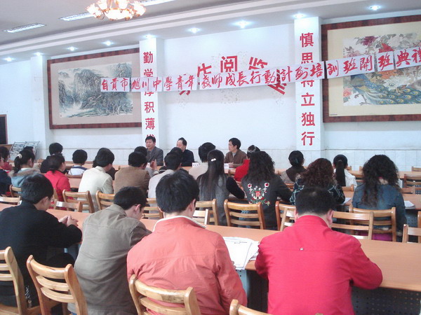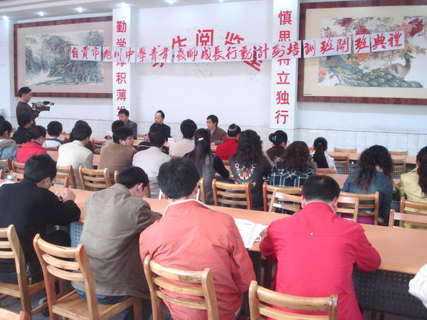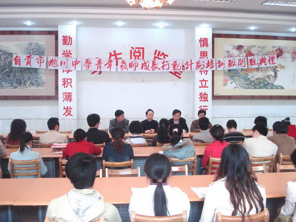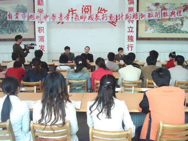 党总支书记、青年教师成长行动计划副组长兼班主任李维庆代表学校宣读了实施青年教师成长行动计划的决定和实施方案。青年教师成长行动计划的目标是:⑴巩固专业思想,熟悉有关教育法规,具备教师职业道德和行为规范,掌握所教学科教学大纲、考试大纲、教材和教学常规,掌握教育教学基本技能,加深对本学科教学规律的认识。⑵提升青年教师基本素质,使青年教师在教师礼仪、棋琴书画、艺术作品欣赏等方面有较大进步。学员既是受训者,又是创新者。使学员在教学中敢想敢干,勇于探索,尽快形成先进的教育观念,并使相当一部分青年教师成长为21世纪教师队伍的骨干力量,为着力打造“活力旭川、文明旭川、特色旭川、真情旭川”培养一支精干的青年教师队伍。青年教师成长行动计划的内容是:⑴探索班主任和任课教师最优教育教学方法,提高教育教学水平,创新教育教学途径。⑵学习文学、艺术、体育有关知识,懂得欣赏,学会一技之长,彰显教师魅力。⑶学习现代社交礼仪,增强与人交往和有效沟通的能力,提高教师综合素质。⑷学习课堂常用英语,做好实施双语教学准备。