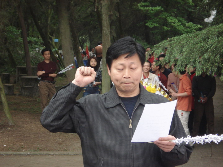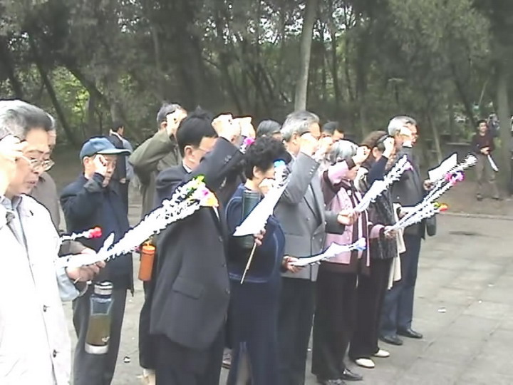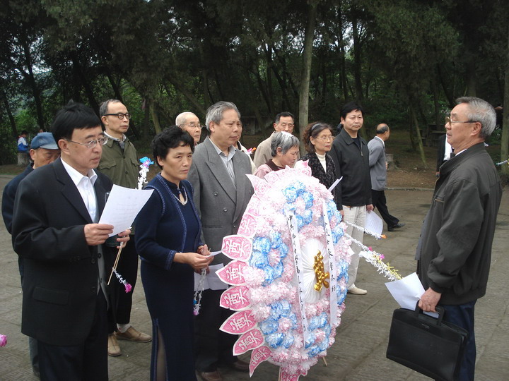 2008年4月11日上午,旭川中学退休党支部的党员们在总支书记李维庆、党办主任冯世庆、支部书记陶家仁的带领下,来到自贡市烈士陵园,进行扫墓活动。在革命烈士纪念碑下,退休的党员们重温了入党誓词。(党政办)